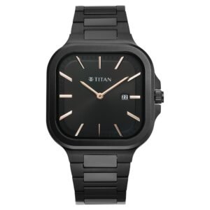 Titan Classique Slim Square Quartz Analog with Date Black Dial Stainless Steel Strap Watch for Men